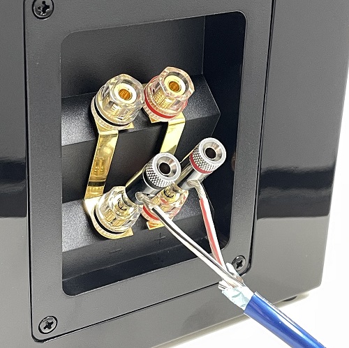リアとサイドの2方向からの接続が可能な使い勝手の良いバナナプラグです。ロジウムメッキが施された剛性の高いメタルボディにスピーカーケーブルをネジ締めするだけで、確実にアンプに固定する事ができます。
